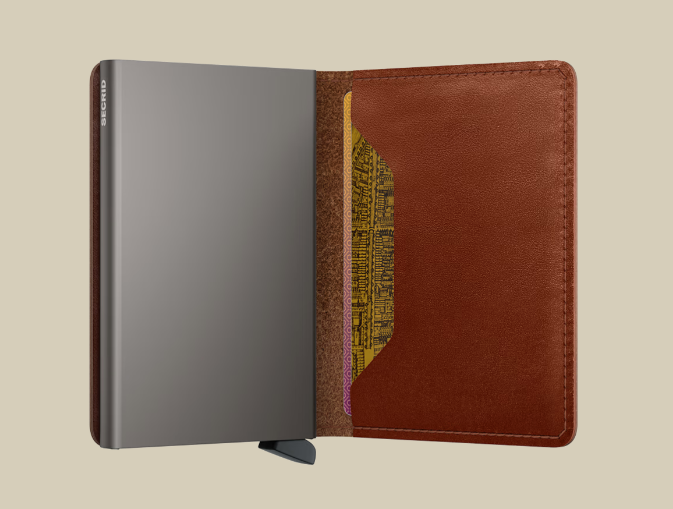Its slim profile makes the Slimwallet fit perfectly into every pocket. The open exterior is cut extra wide to hold cards, banknotes and receipts. The Cardprotector mechanism allows you to slide out cards with one simple motion, while the aluminium protects your cards from bending, breaking and unwanted wireless communication.