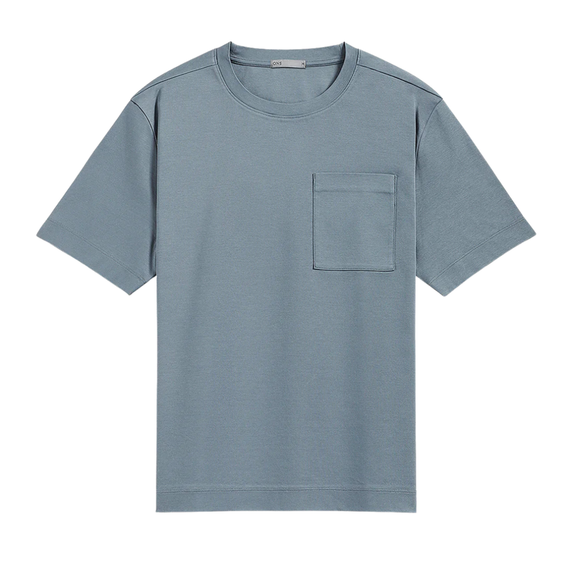 The Baseile Pocket Tee features premium mercerized cotton with an ultra-smooth finish and subtle sheen. The structured boxy fit and chest pocket add refined detail while the luxurious drape elevates any casual look. Breathable and substantial, it holds its shape perfectly year-round and transitions effortlessly from day to night with timeless versatility.