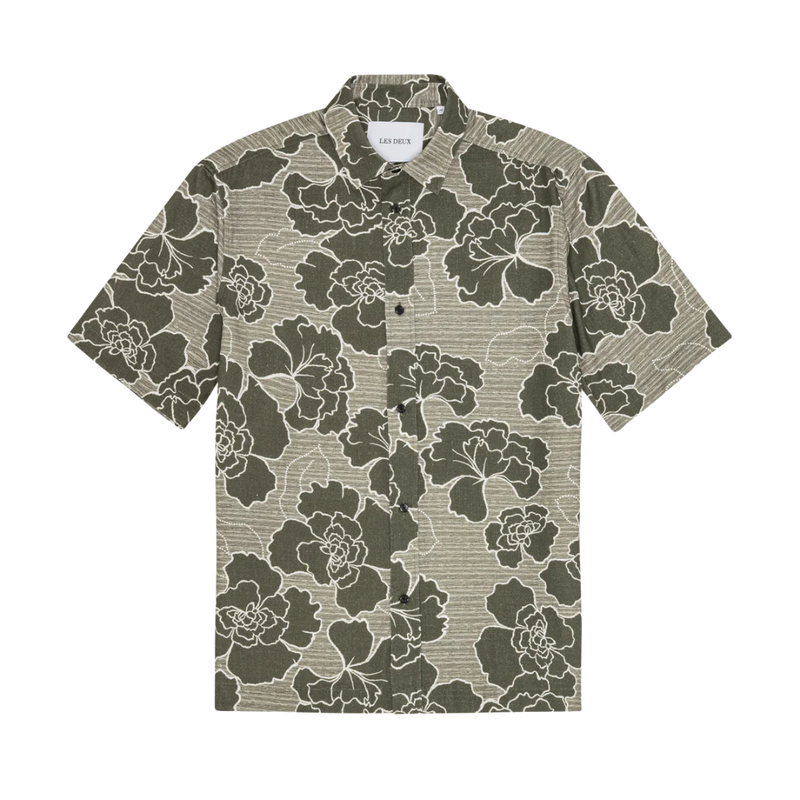 A short sleeve shirt in a soft cotton–lyocell blend, printed all over with outlined poppy artwork. Designed with a classic collar and finished with tonal mother-of-pearl–look buttons at the front.