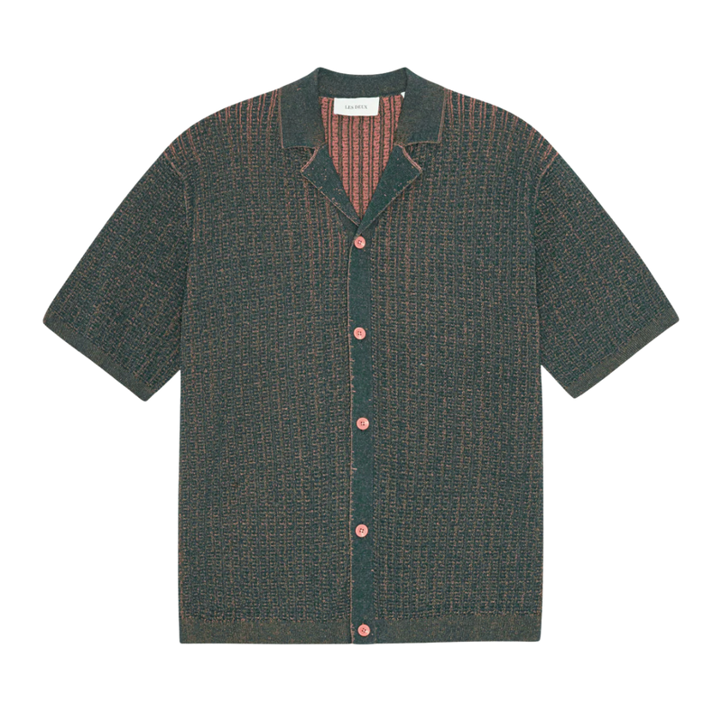 A breezy short sleeve crafted in pointelle jersey for lightness and texture. The Hector is finished with a casual collar and tonal mother of pearl look buttons.