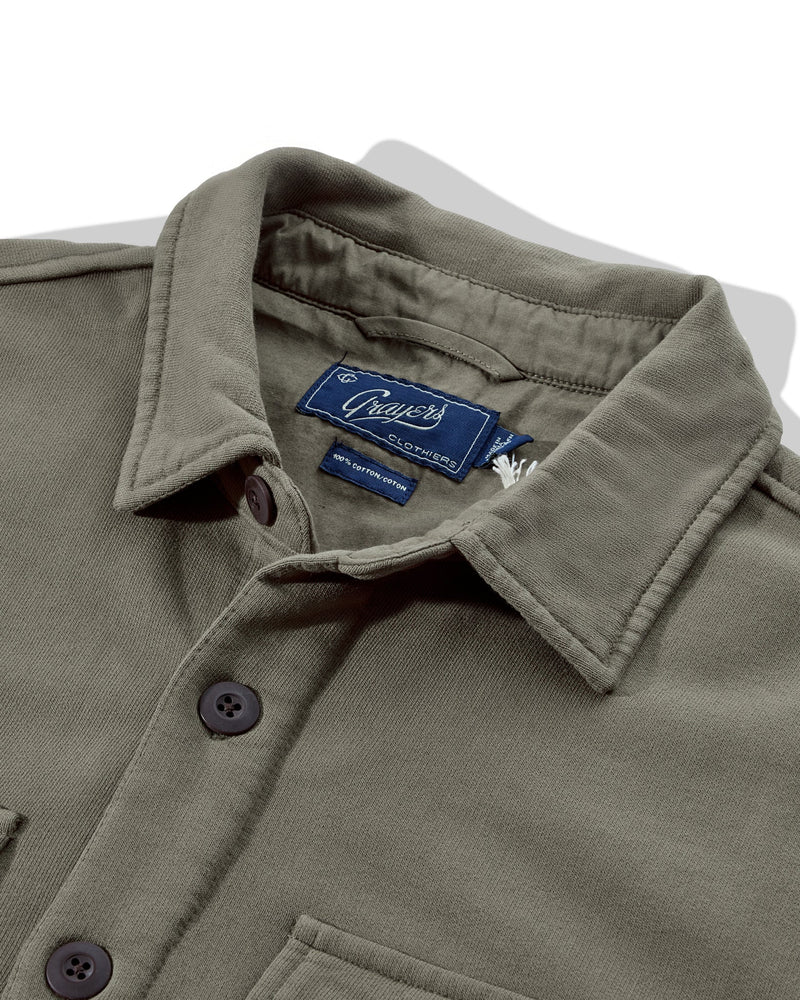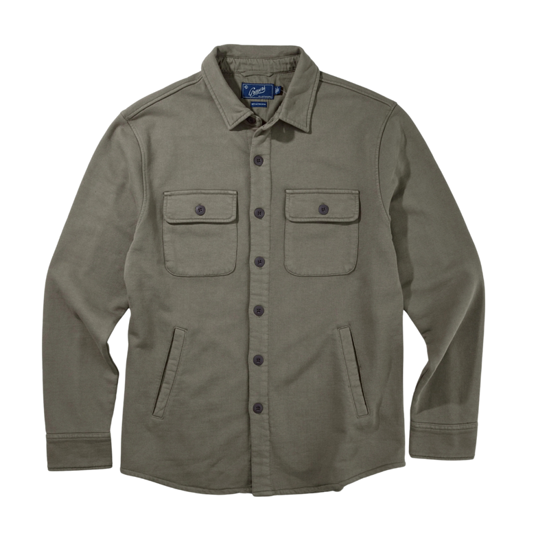 The latest from our Defender lineup, this utility-inspired CPO is crafted from a heavyweight 15 oz loop-back terry—yes, that’s sweatshirt fabric, but tougher. Garment dyed for depth and broken-in comfort, it’s designed to handle the colder months without sacrificing movement or style. Military-style flap pockets and clean besom hand pockets nod to vintage field gear, while natural stretch makes it all-day wearable. Layer it, live in it, defend your right to dress better.