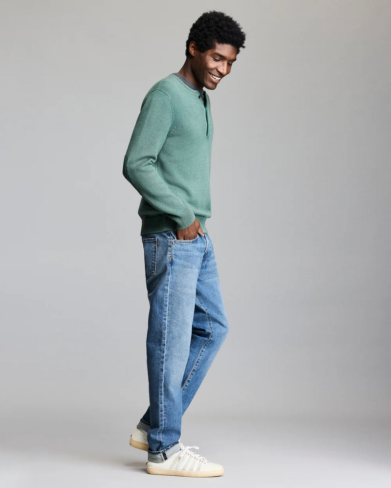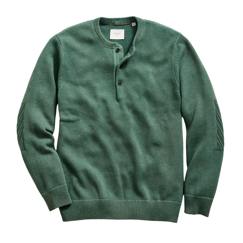 This classic henley style is knit from 100% cotton that's been garment-dyed for a lived-in look and feel, making it a perfect piece to wear on its own now, and layer with as the weather cools down. It’s finished with a band collar, dark horn buttons, knit-in heirloom elbow patches, and a ribbed neck for added reinforcement.