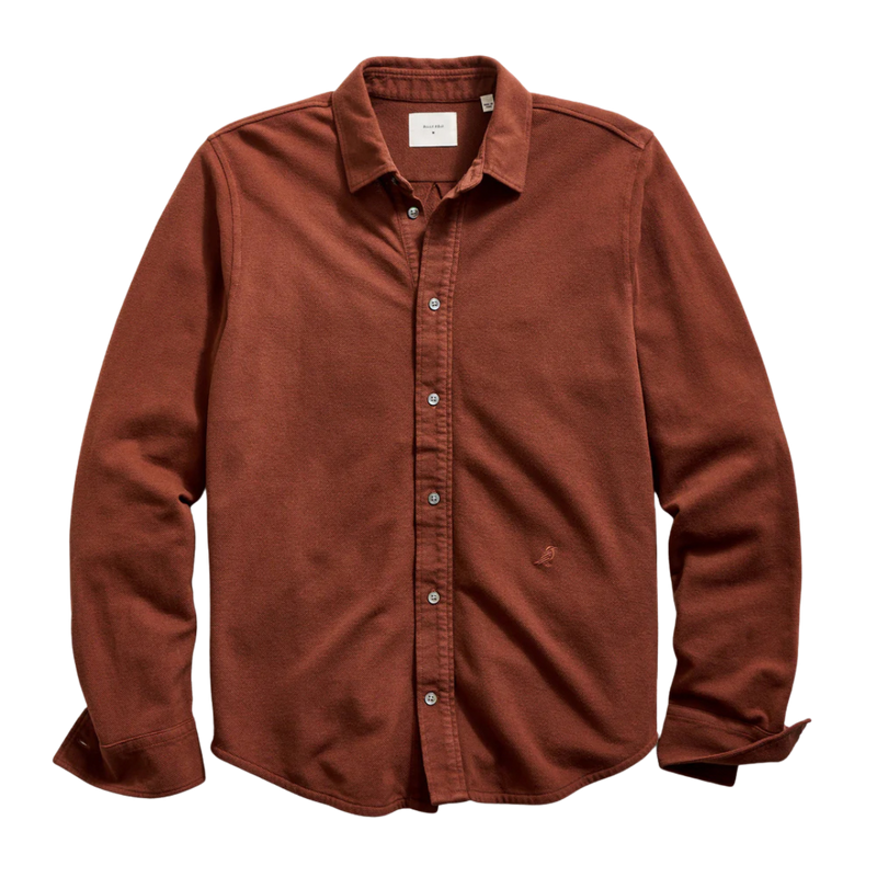 A button-front shirt with a rich backstory, the Yellowhammer Shirt is named after the state bird of Alabama and is inspired by a beloved piece from the archives. Crafted from a rich cotton-linen knit that's been garment-dyed, it gives a lived-in look and feel, right off the rack. It's finished with thoughtful details like mother-of-pearl buttons and a subtle yet elevated touch woven in tonal thread at the wearer's left waist: a yellowhammer.