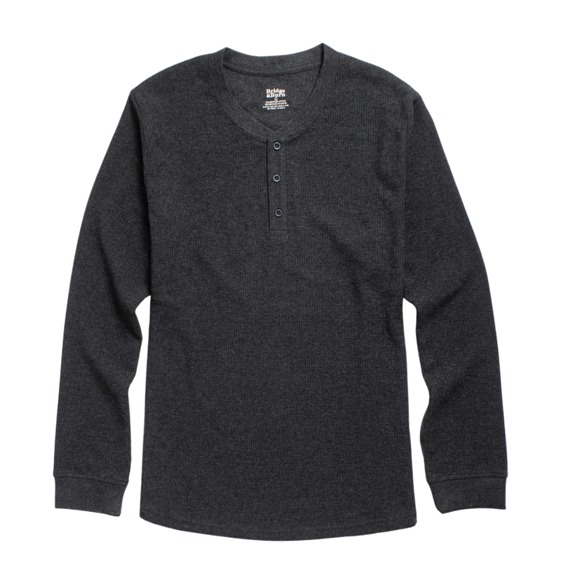 A true classic, updated with a modern fit, this waffle-knit henley is crafted from 100% recycled fibers using a proprietary color-sorting process that eliminates the need for dyes and drastically reduces water use. With its insulating waffle-knit texture and flattering silhouette, this piece is perfect layered under a flannel or worn solo on mild days. When used as a layering piece, the thermal waffle structure traps warmth without bulk, those small, square-shaped pockets hold heat close to the body while still allowing airflow for all-day comfort. Soft, sustainable, and made to last - this is your everyday go-to, done right.