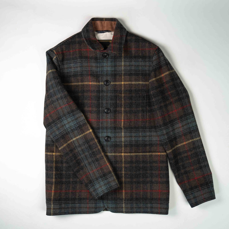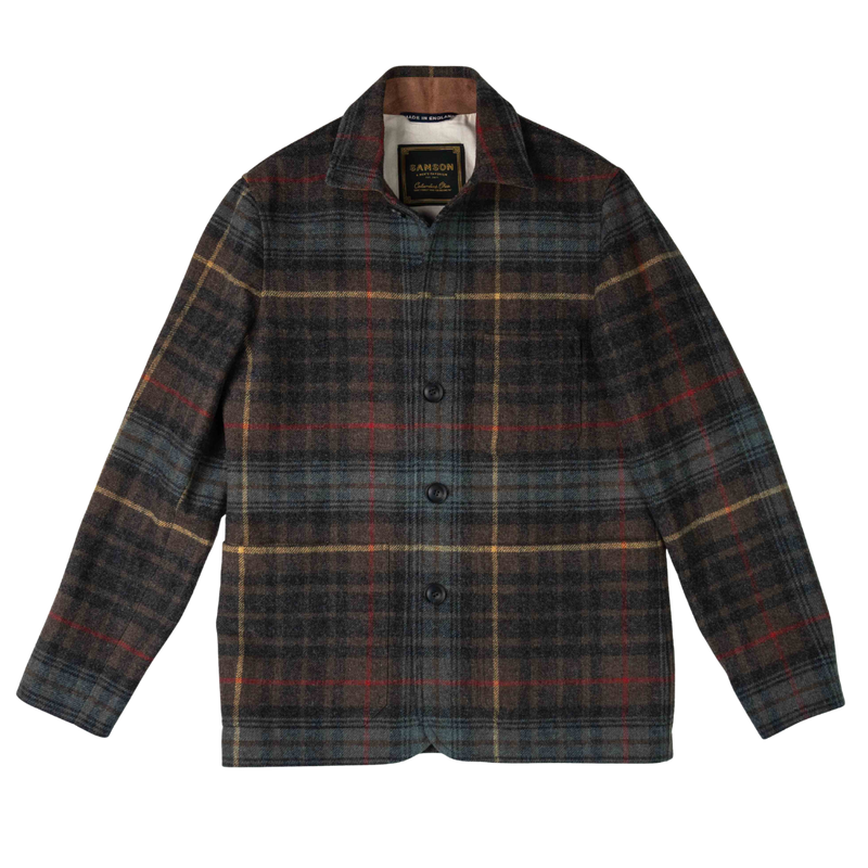 SAMSON brings you this classic chore coat stepped up in style w/ a tartan tweed. Made in London, England, the 100% wool tartan lends the look of a blazer to dress it up or down. Fully lined...body in cotton muslin and interior sleeves w/ viscose. Undercollar is brown suede for a striking look when popped up.
